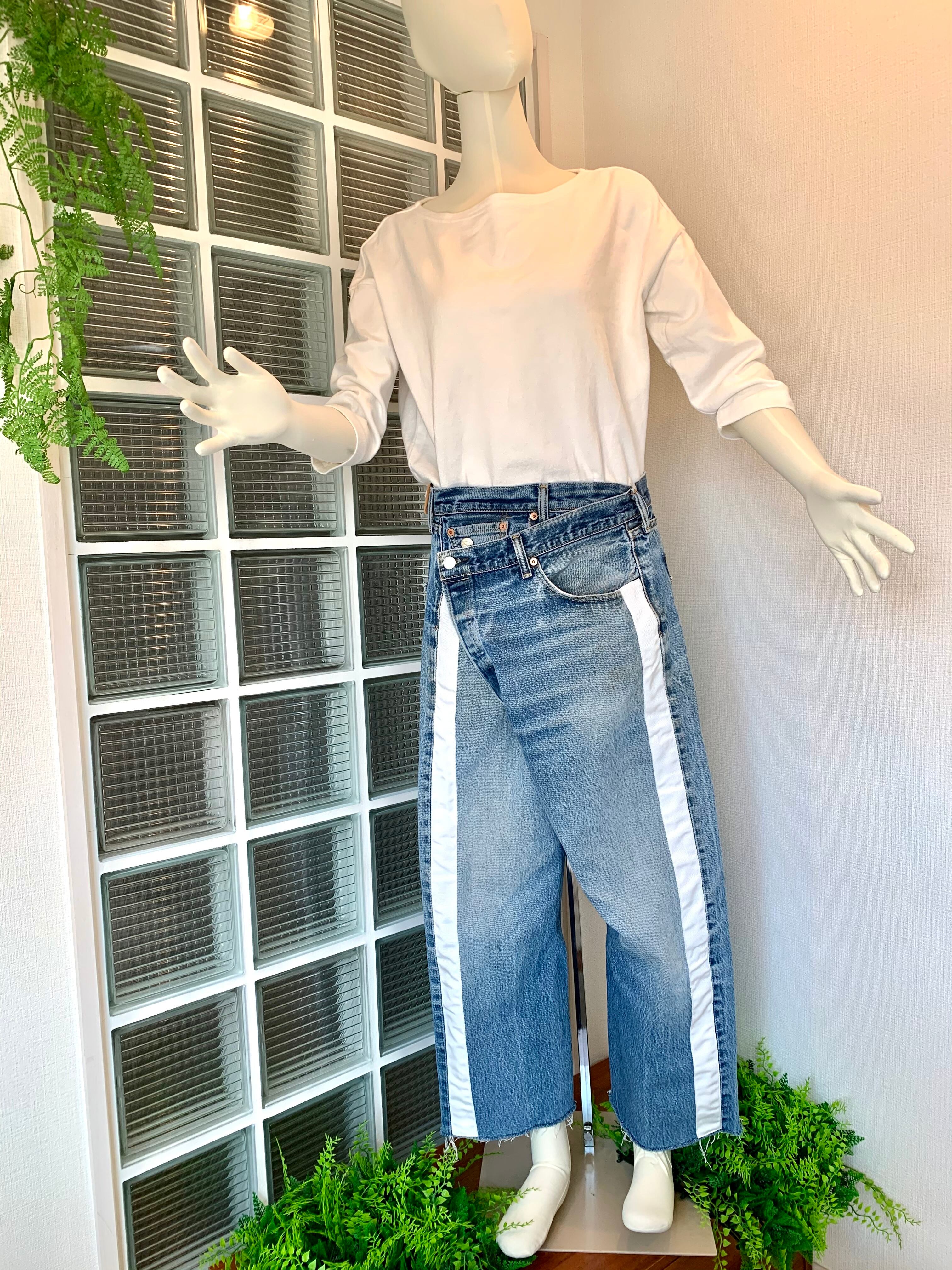 ⭐︎LEVIS ヴィンテージUSEDデニムパンツにサイドライン、ラップ変形スタイルにリメイク