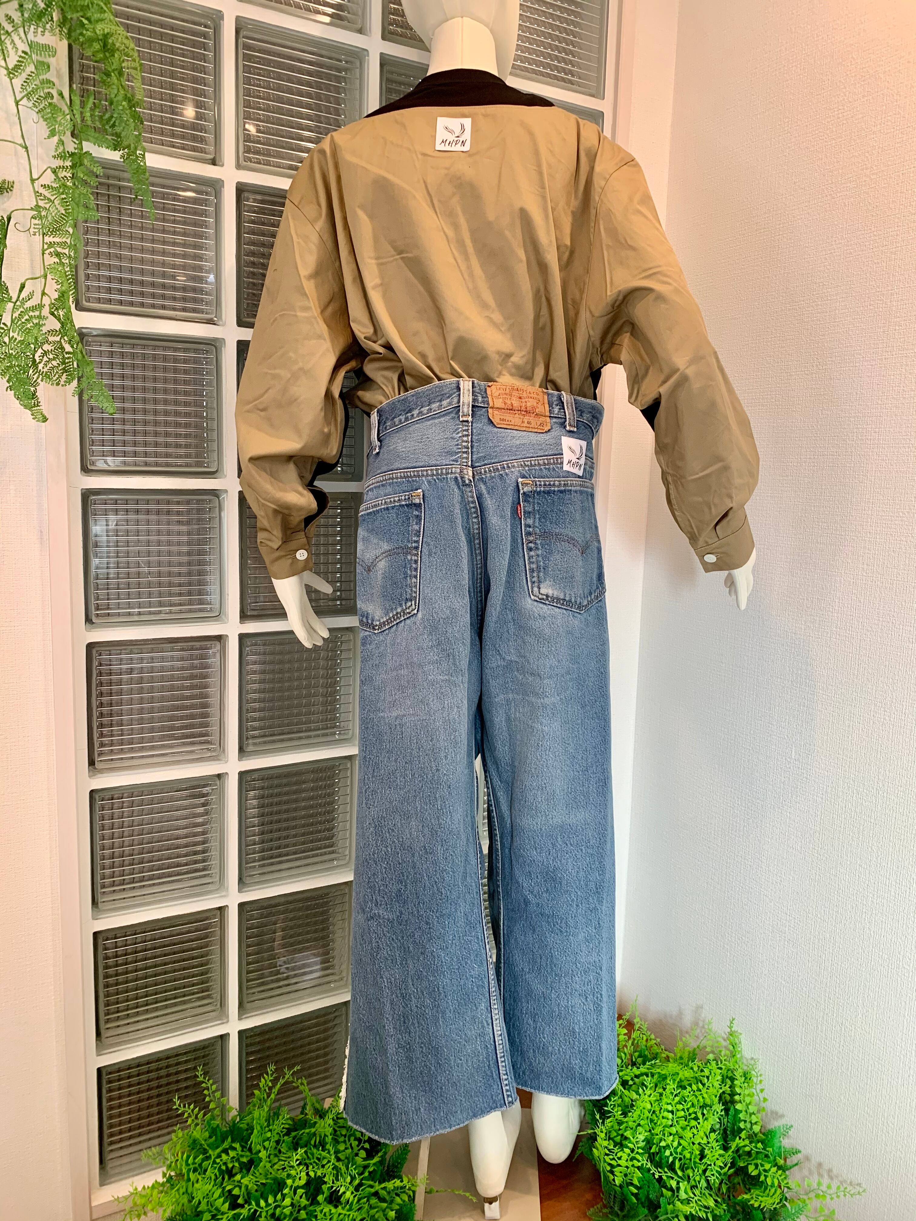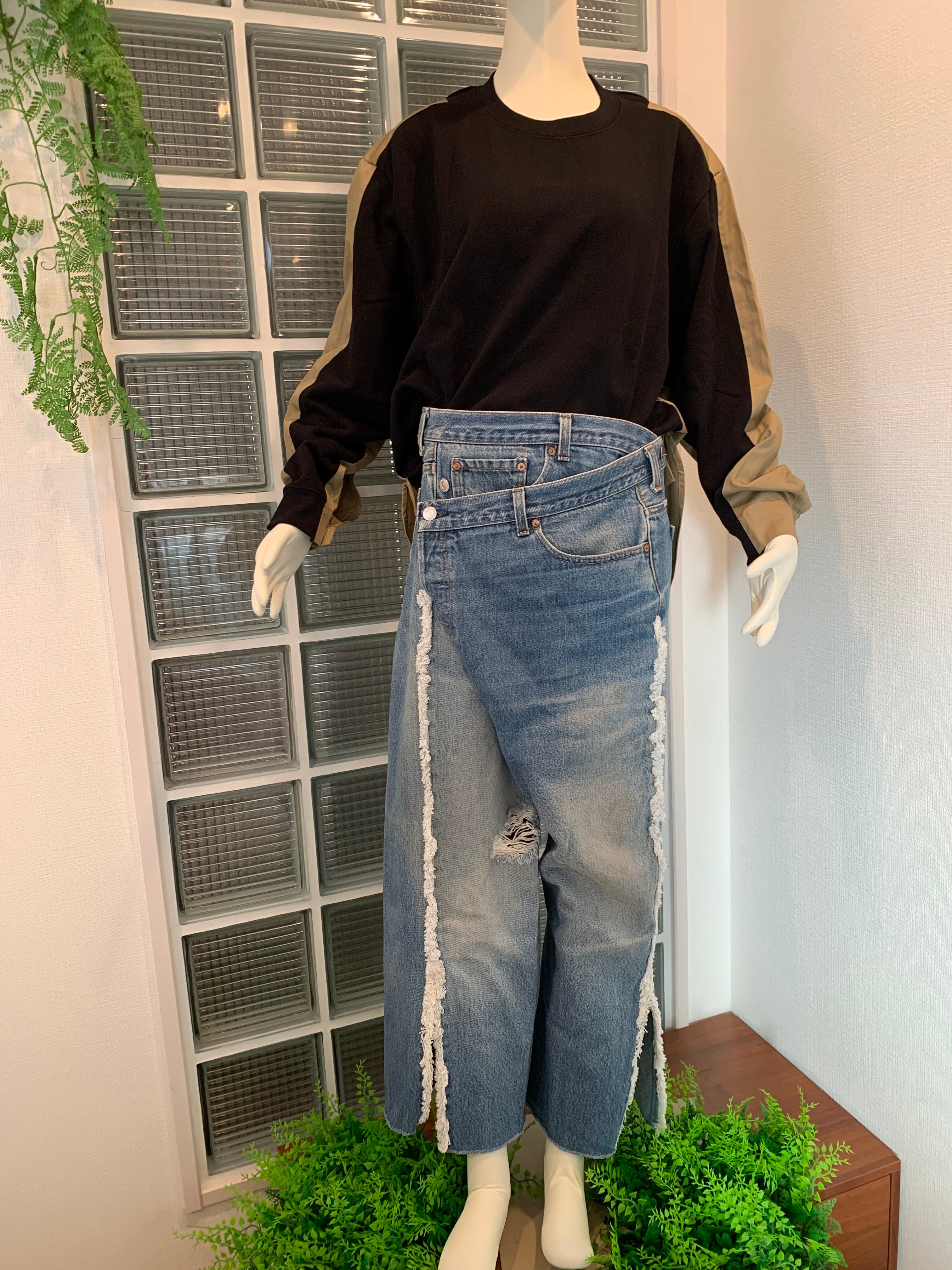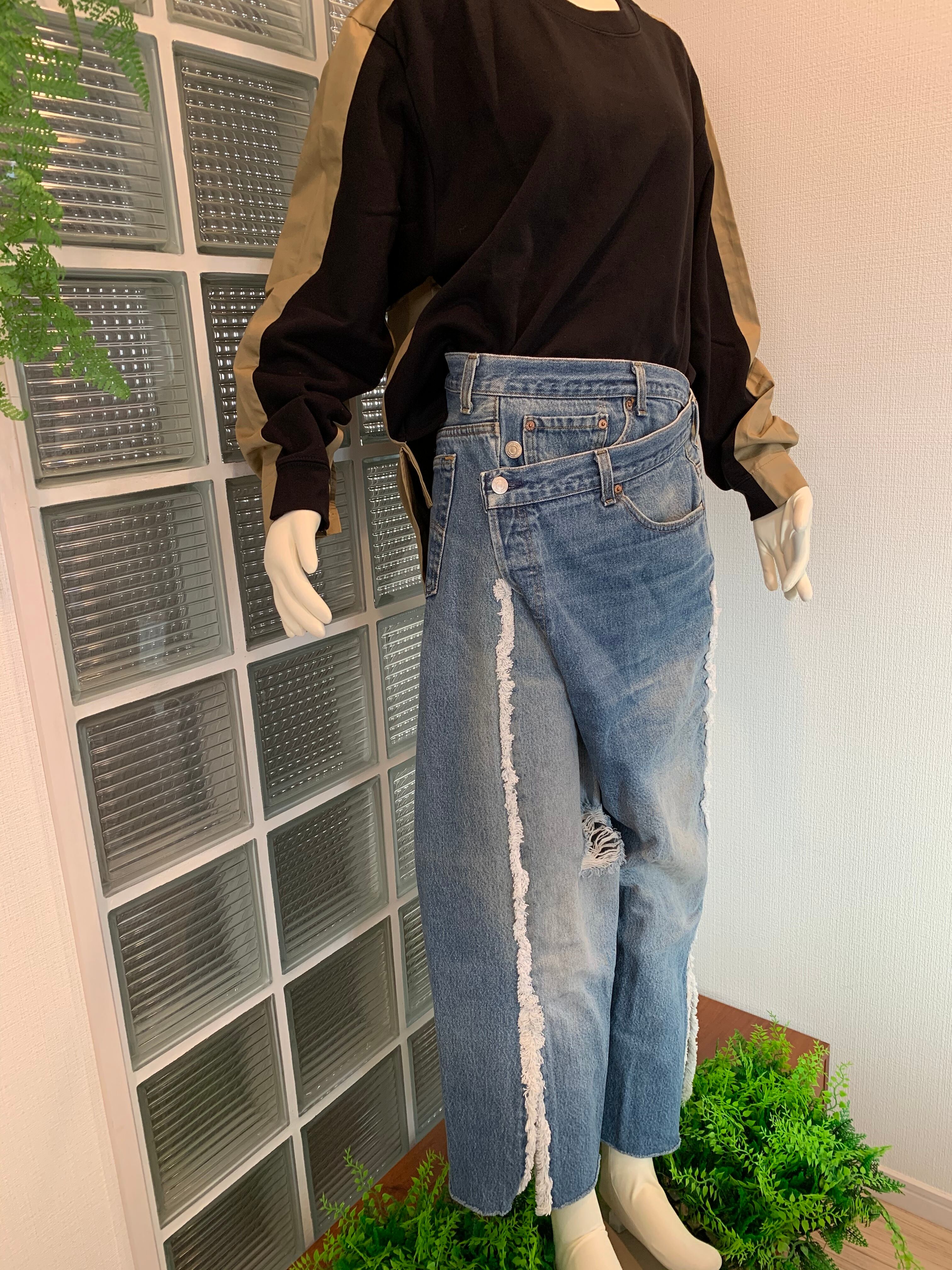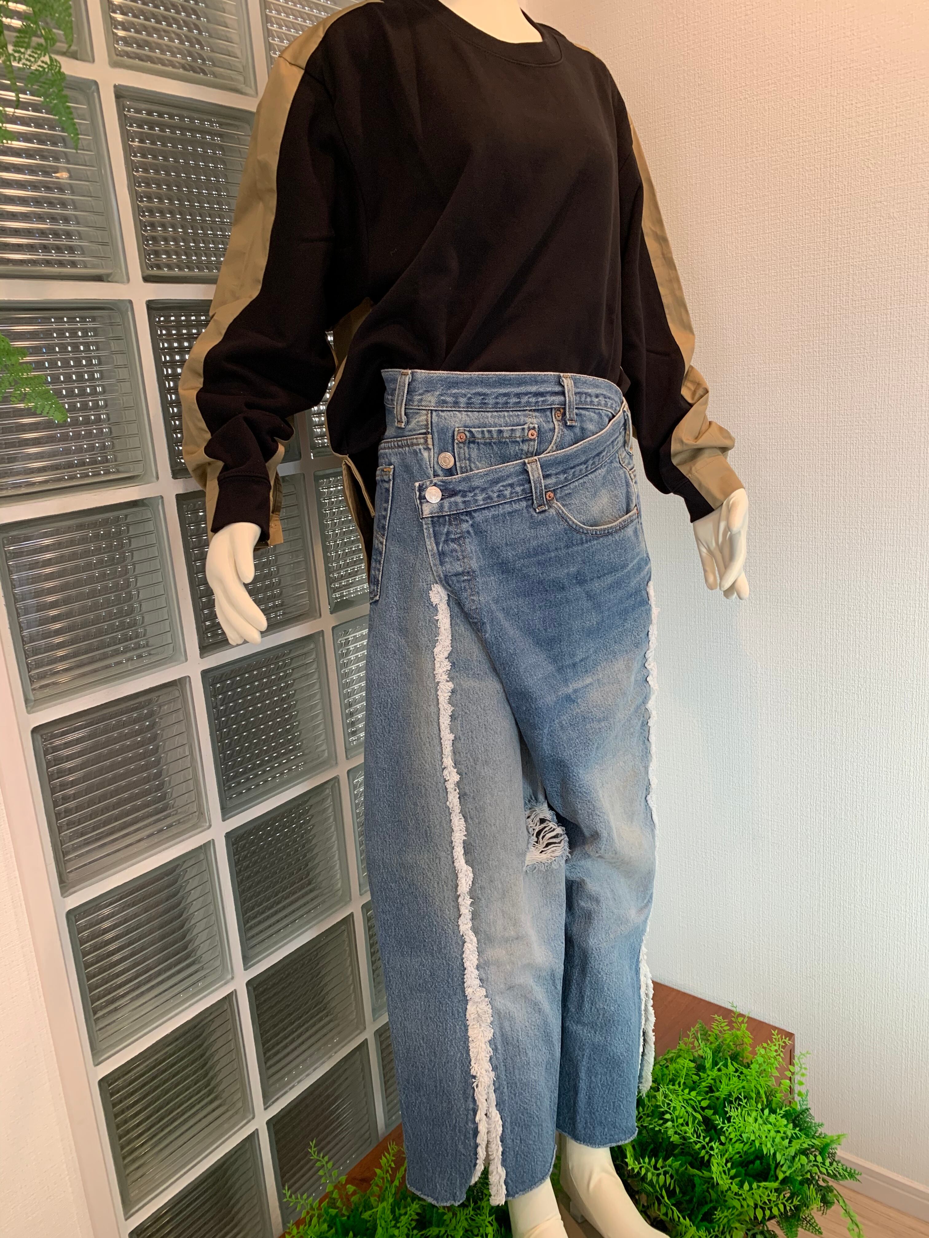 ⭐︎LEVIS ヴィンテージUSEDデニムパンツにサイドフリンジライン、ラップ変形スタイルにリメイク